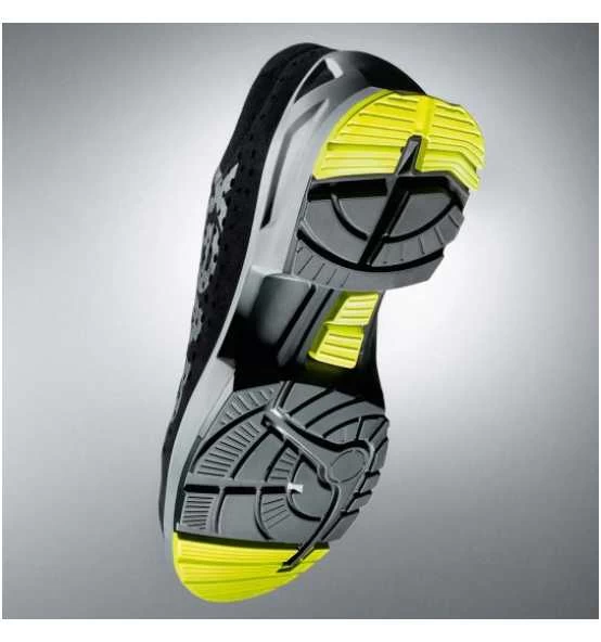 - auswechselbares antistatisches Komfortfußbett mit Feuchtigkeitstransportsystem und zusätzlicher Fersen- und Vorfußdämpfung