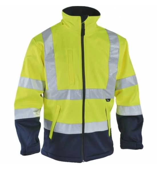 Durch das wasserfeste Softshell-Material und dem vollständig durchgängigen, wasserdichten Frontreißverschluss mit Kinnschutz ist die Warnschutz Regenjacke von Vizwell ein hervorragender Begleiter für Arbeiten in nassen Umgebungen.